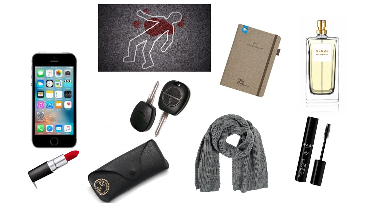 Στα πλαίσια του μαθήματος της νεοελληνικής λογοτεχνίας παίξαμε ένα παιχνίδι δημιουργικής γραφής με τους μαθητές της Β΄ γυμνασίου. Ζητήσαμε από κάθε μαθητή-τρια να ψάξει στην σχολική τσάντα του/της και να δώσει ένα προσωπικό αντικείμενο που δεν είχε σχέση με το σχολείο και τα μαθήματα. Τα αντικείμενα που συγκεντρώσαμε ήταν: κλειδιά αμαξιού, κινητό, κραγιόν, μάσκαρα, μπουκαλάκι με άρωμα, θήκη γυαλιών, κασκόλ, ατζέντα.