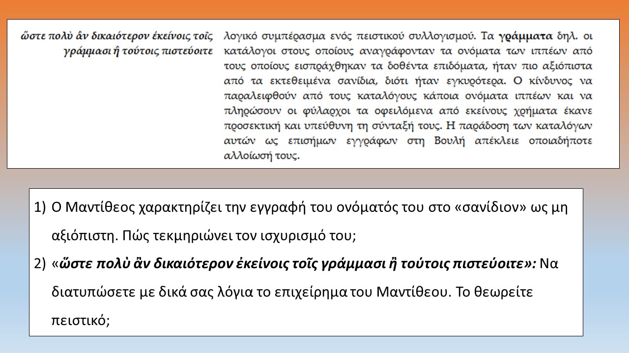 ΔΙΔΑΚΤΙΚΗ ΠΡΟΤΑΣΗ: "Υπέρ Μαντιθέου", παράγραφοι 6-7