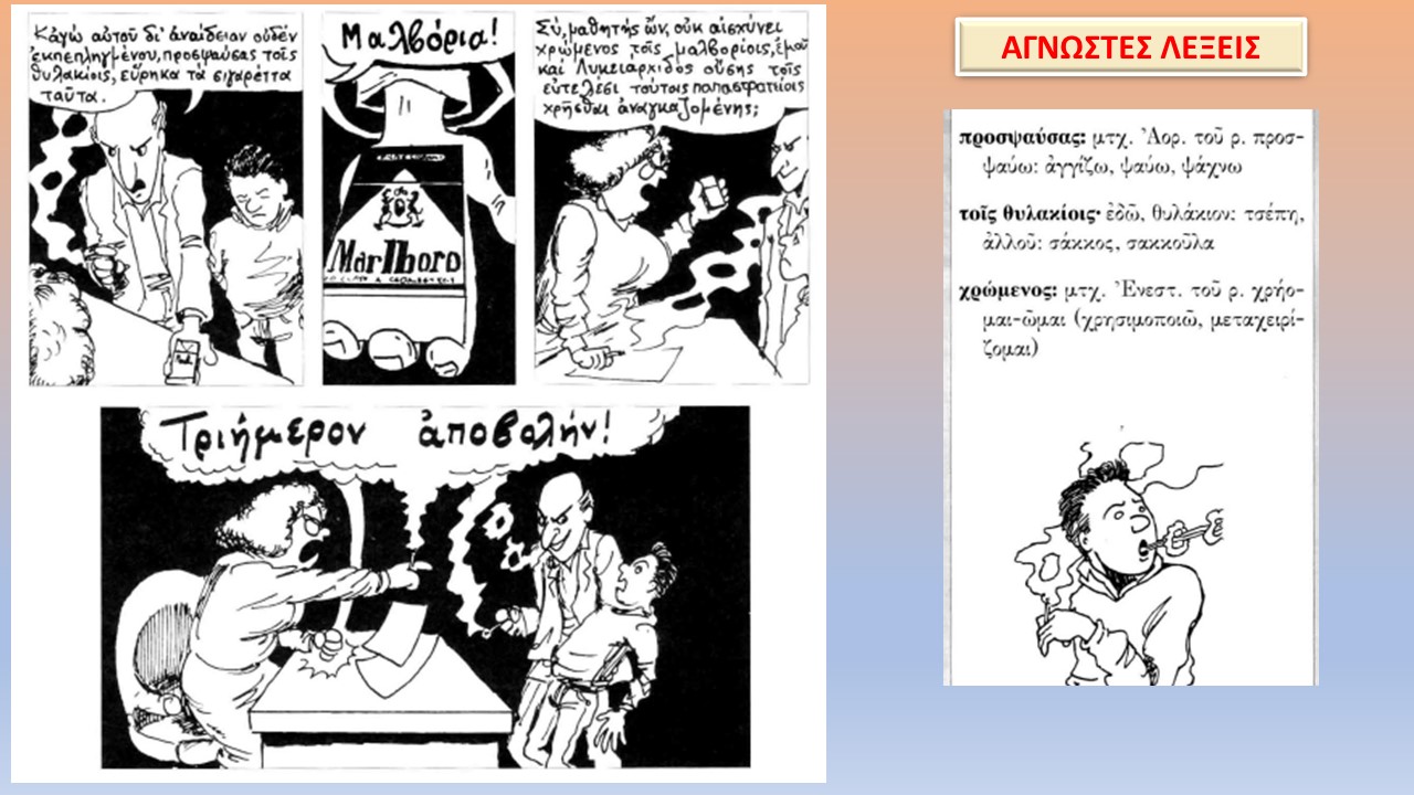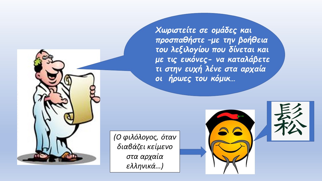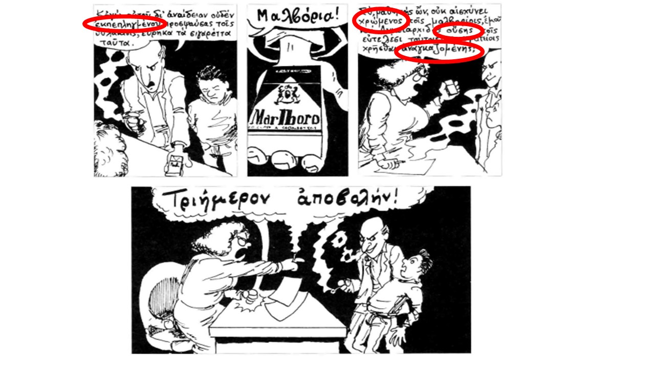Μια διδακτική πρόταση που βασίζεται στο βιβλίο "Συντακτικό της αρχαίας ελληνικής σε κωμικογραφήματα" του Χρίστου Δάλκου, εκδ. Δίαυλος