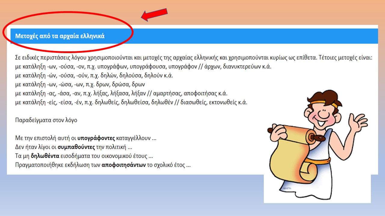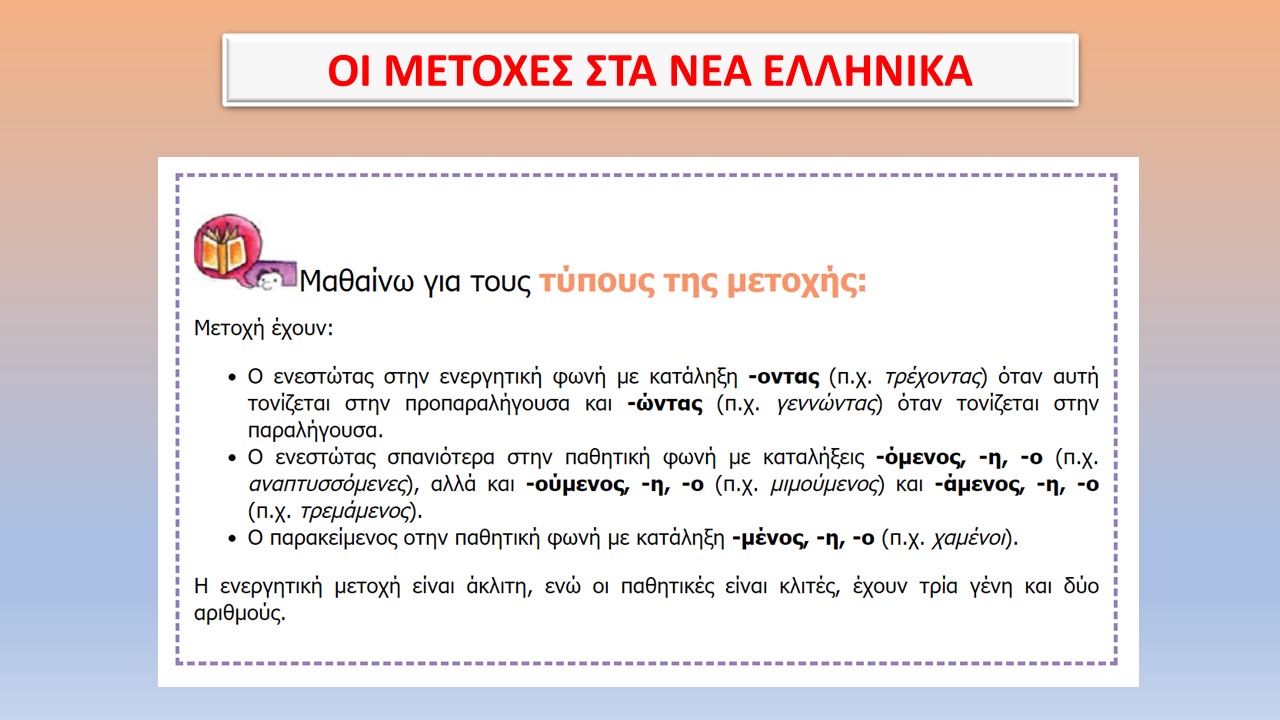 ΕΙΔΗ ΜΕΤΟΧΩΝ ΣΤΑ ΑΡΧΑΙΑ ΕΛΛΗΝΙΚΑ