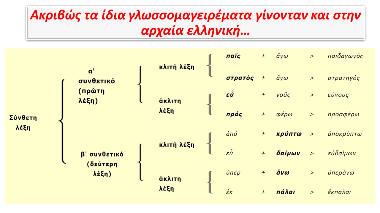 3. Να γνωρίσουν τη διαδικασία σύνθεσης των λέξεων στην α.ε. και να τη συσχετίσουν με τη ν.ε. γλώσσα.