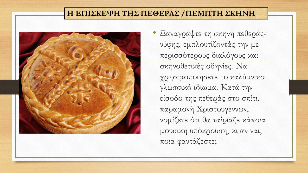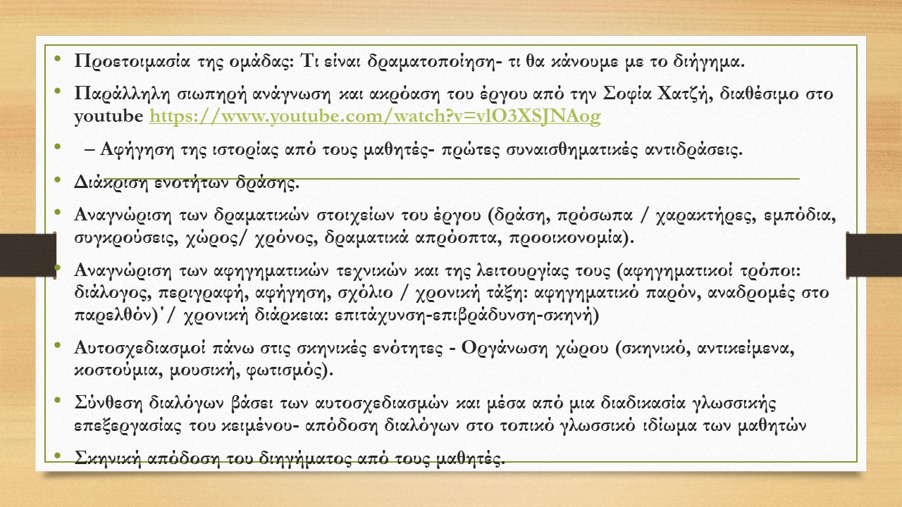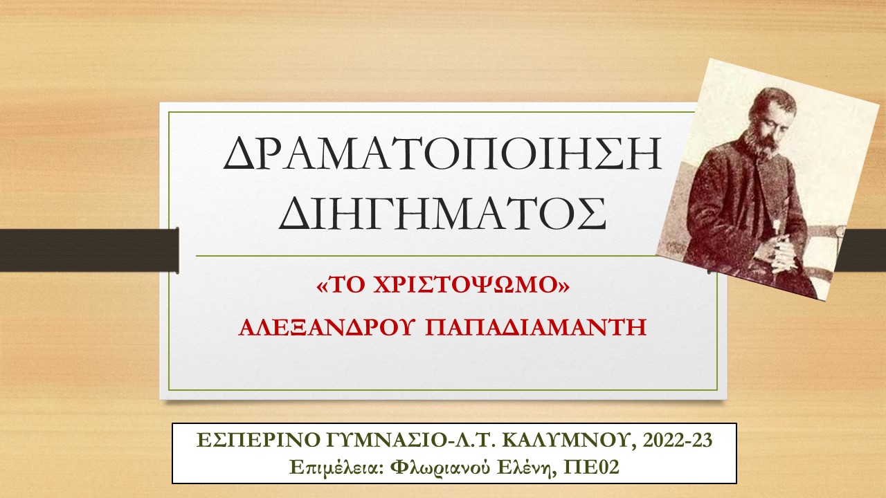 Οι μαθητές διασκευάζουν σε θεατρικό κείμενο το διήγημα του Παπαδιαμάντη "Το χριστόψωμο", με σκοπό να το ανεβάσουν στην σκηνή του σχολείου. Διάρκεια: 8 ώρες- Εργασία ομαδοσυνεργατική- Δημιουργός: Φλωριανού Ελένη