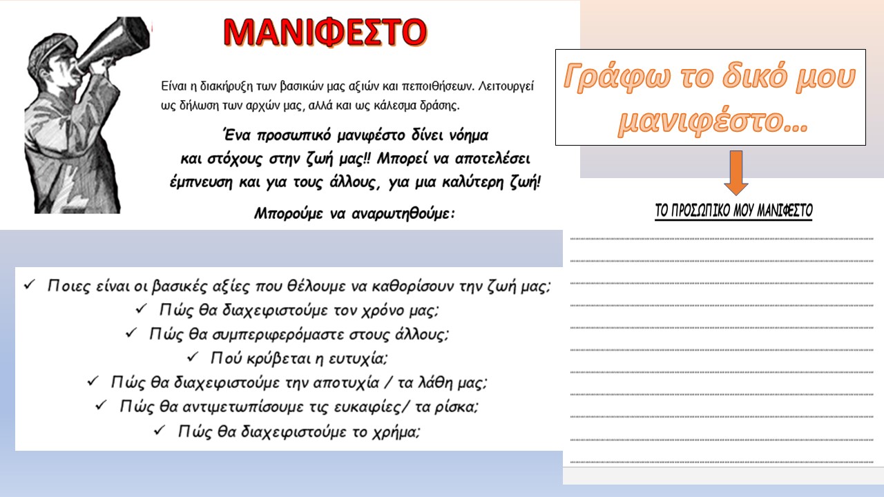 Τι είναι το «Μανιφέστο»; Ποια είναι η λειτουργία και η σπουδαιότητά του; Συμπληρώνω το δικό μου, προσωπικό μανιφέστο.
