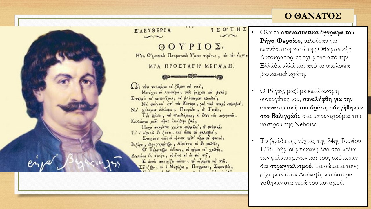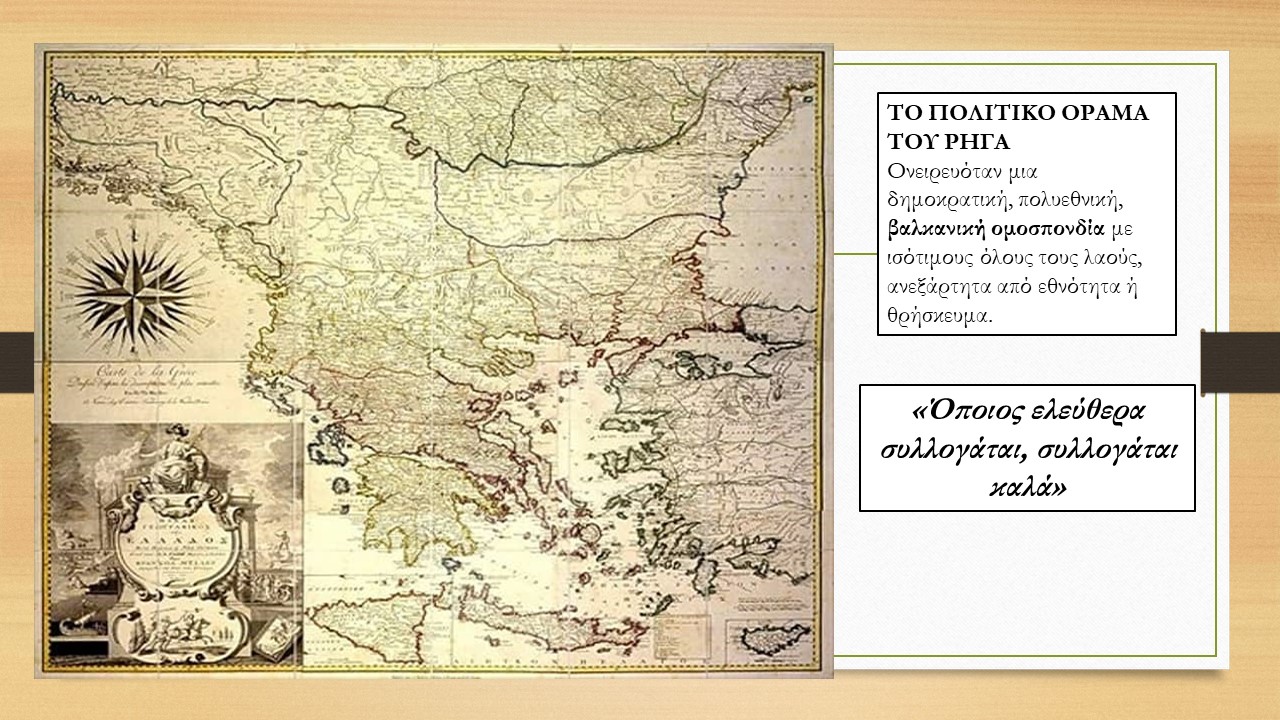* Παρακολουθήστε μια μικρή παρουσίαση (p.point) για τον νεοελληνικό διαφωτισμό, το πολιτικό όραμα και το έργο του Ρήγα Φεραίου. (διάρκεια : 10 λεπτά)