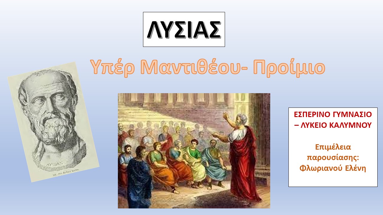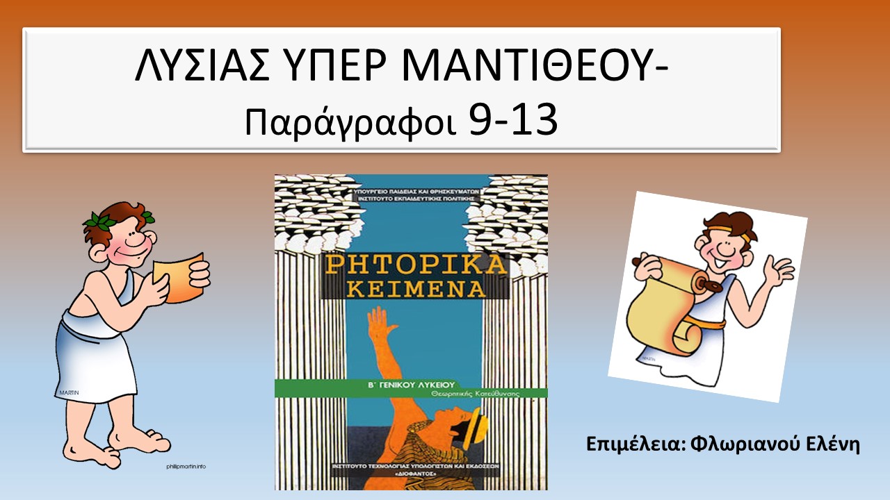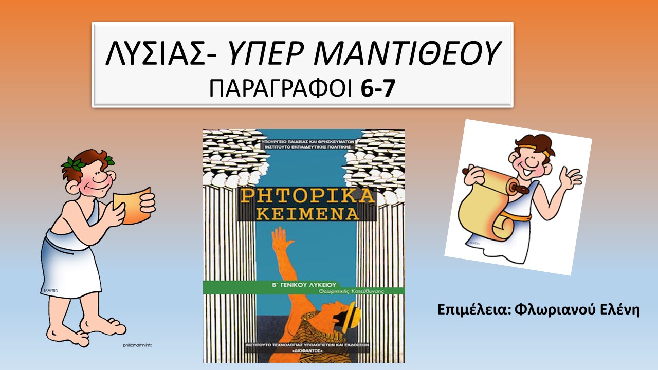 Διδακτική πρόταση- διάρκεια 4 ώρες. Δημιουργός: Φλωριανού Ελένη. Οι μαθητές "γυρίζουν" σε ταινιάκι την δική τους εκδοχή για την δίκη του Μαντίθεου.